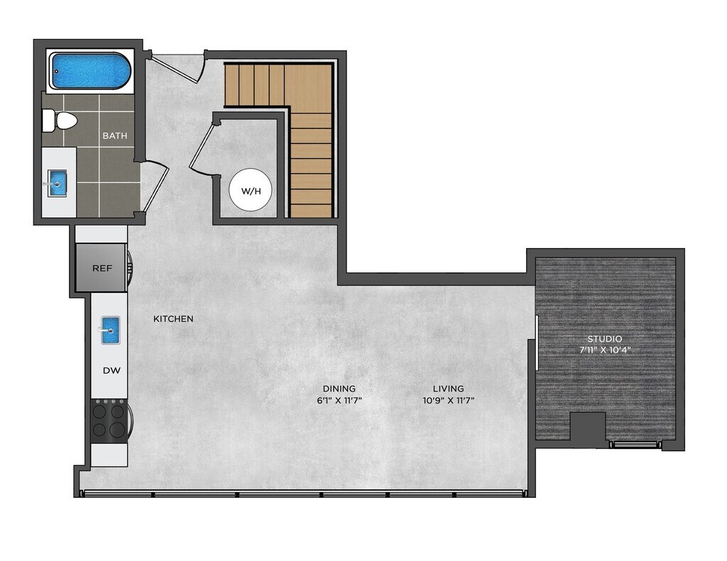 Estudio, 1 Baño, 618 pies²Galería del Modelo