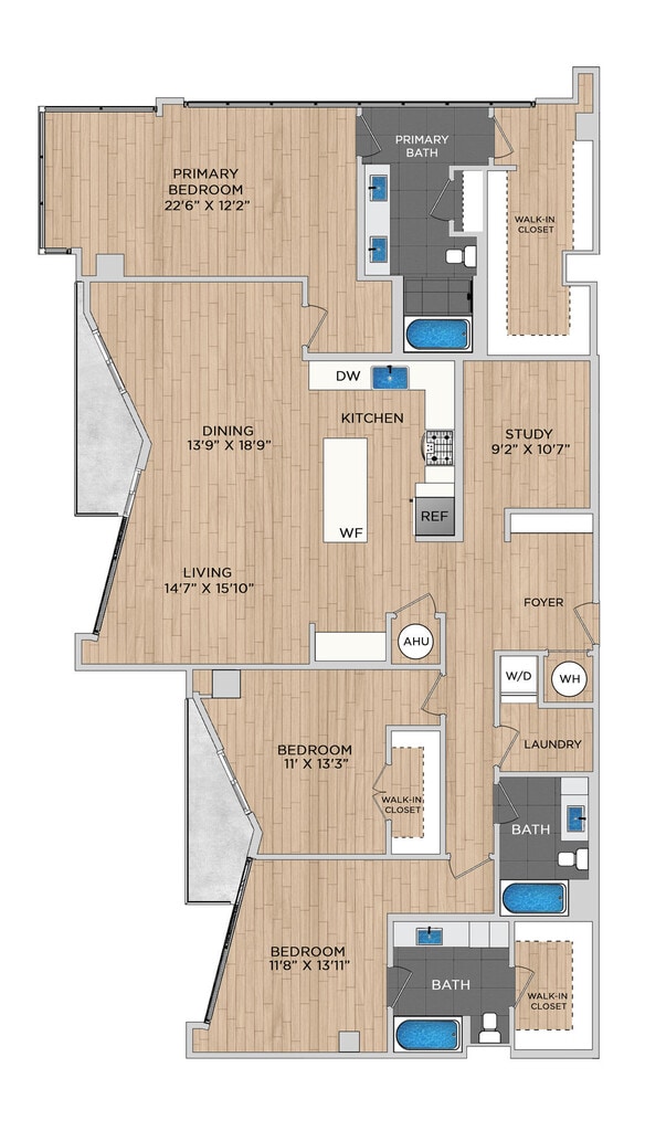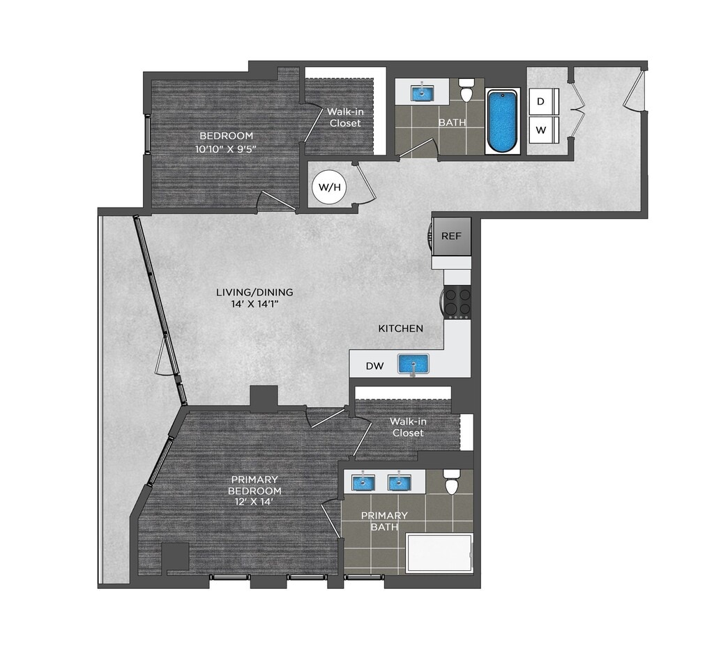 Modelo de apartamento: A3.11 Dormitorio, 1 Baño, 782 sq ftDisponible February 8, 2026![]()