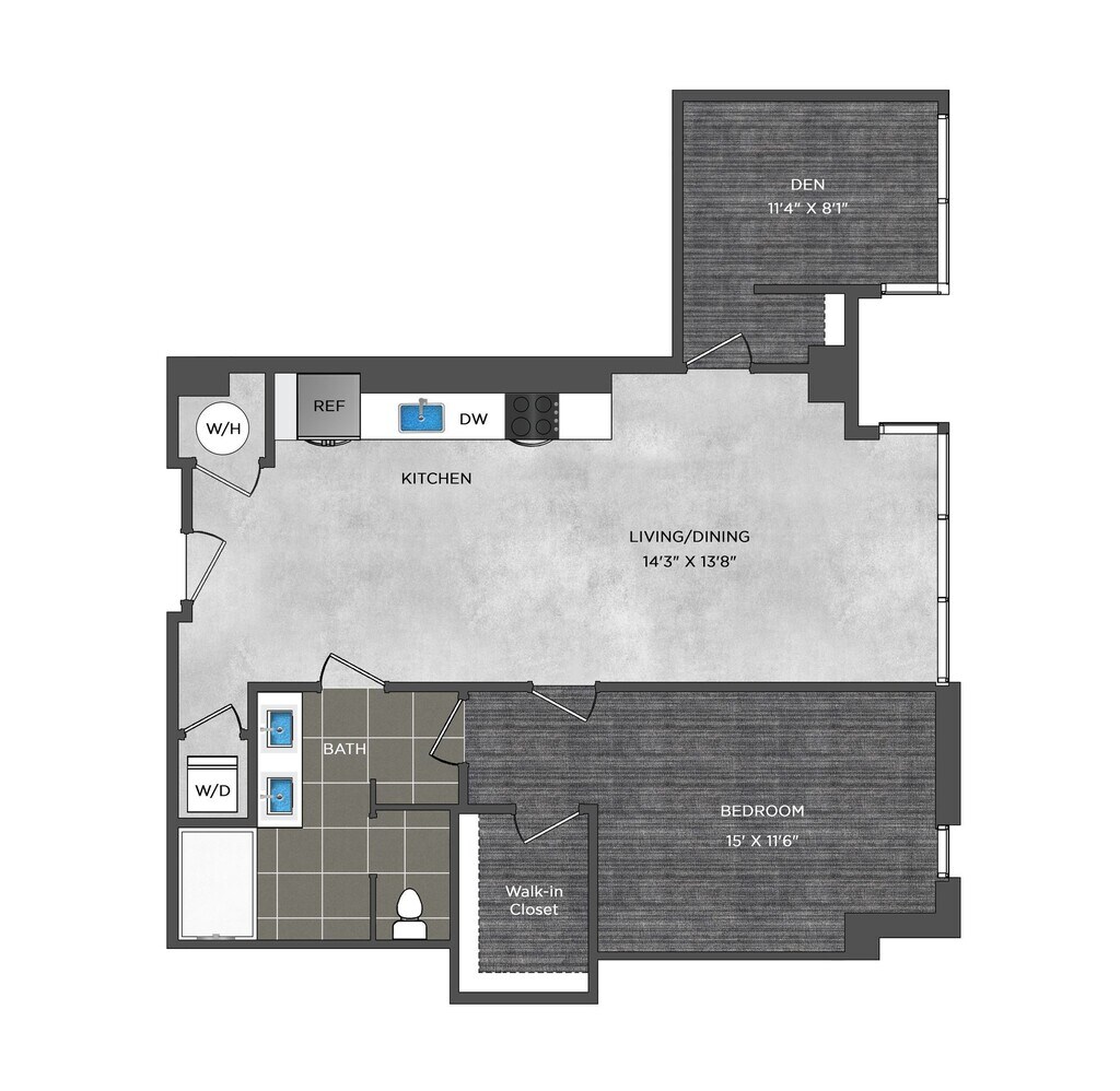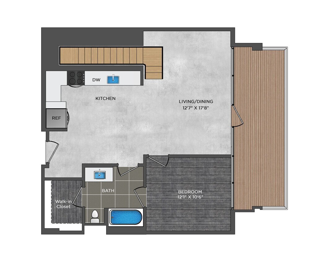 Modelo de apartamento: LA21 Dormitorio, 1 Baño, 713 sq ftDisponible Ahora![]()