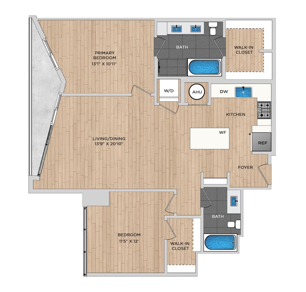 Modelo de apartamento: A5.11 Dormitorio, 1 Baño, 941 sq ftDisponible Ahora![]()