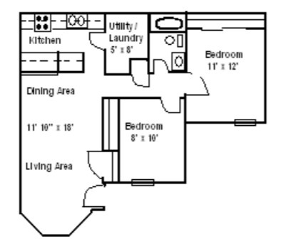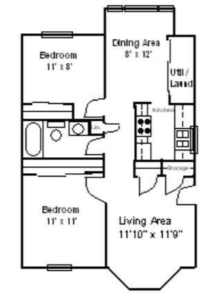 2 Dormitorios, 1 Baño, 759 pies²Galería del Modelo