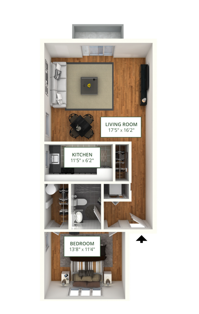 Modelo de apartamento: 1BR 1BA w/Basement (740 SF)Desde $2,7991 Dormitorio, 1 Baño, 740 sq ftDisponible Ahora![]()