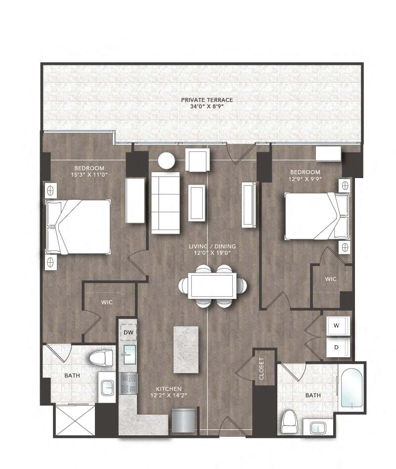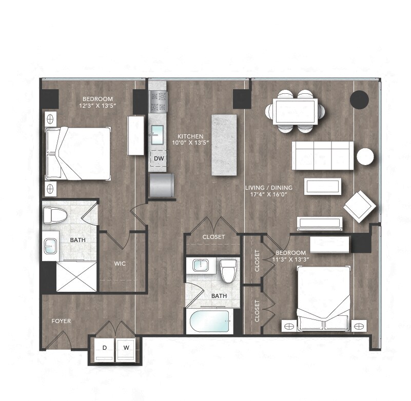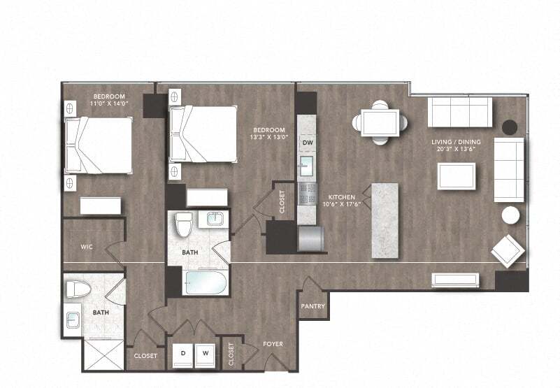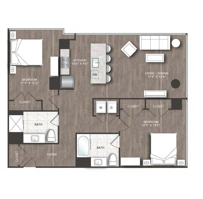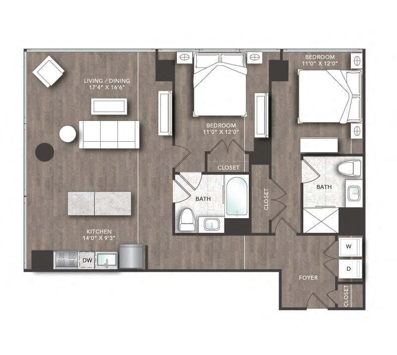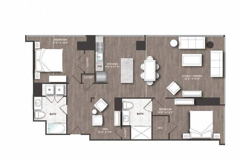 Modelo de apartamento: H UnitsDesde $2,9471 Dormitorio, 1 Baño, 754 sq ftDisponible Ahora![]()