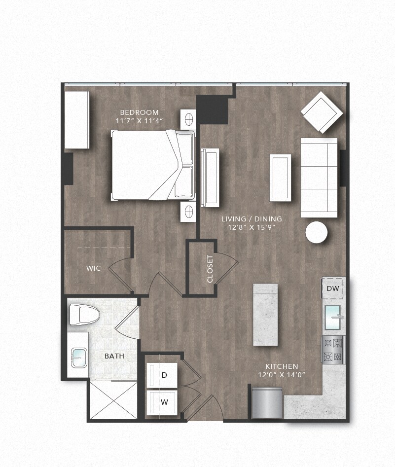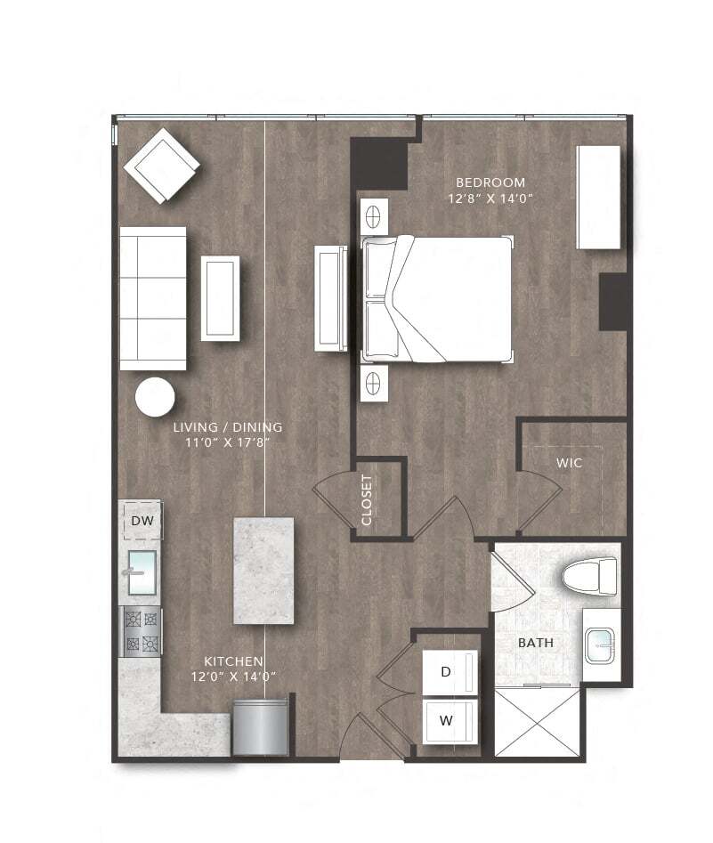 1 Dormitorio, 1 Baño, 754 pies²Precio Mensual TotalDisponible Dec 6Galería del Modelo