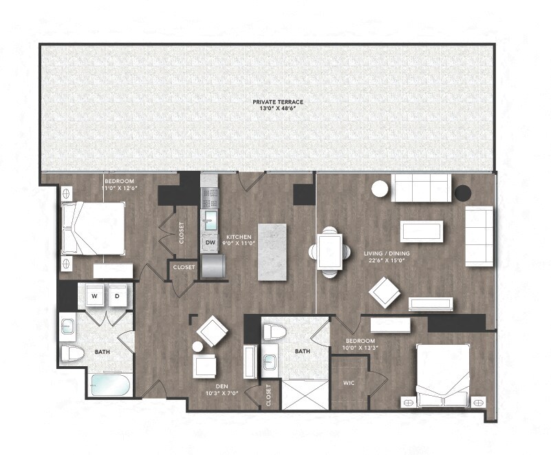 Modelo de apartamento: G UnitsDesde $2,7771 Dormitorio, 1 Baño, 713 sq ftDisponible Ahora![]()