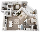 Modelo de apartamento: B1Desde $1,9702 Dormitorios, 2 Baños, 1107 sq ftDisponible AhoraLos planos son representaciones artísticas. Todas las dimensiones son aproximadas. El producto y las especificaciones reales pueden variar en tamaño o detalle. No todas las características están disponibles en cada vivienda en alquiler. Por favor, consulta con un representante para obtener más detalles.