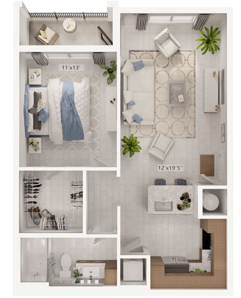 1 Dormitorio, 1 Baño, 787 pies²Disponible AhoraGalería del Modelo