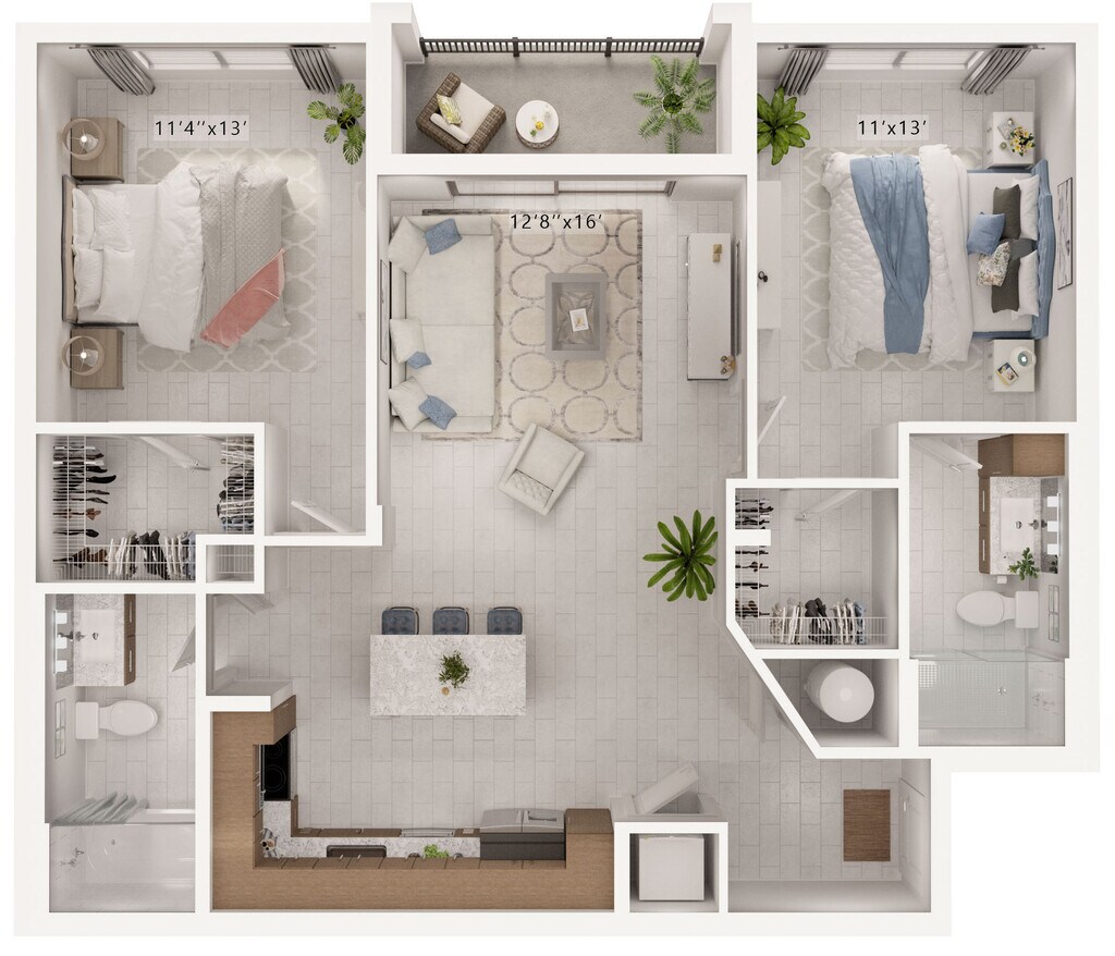 Modelo de apartamento: BourbonDesde $2,5722 Dormitorios, 2 Baños, 1109 sq ftDisponible Ahora![]()