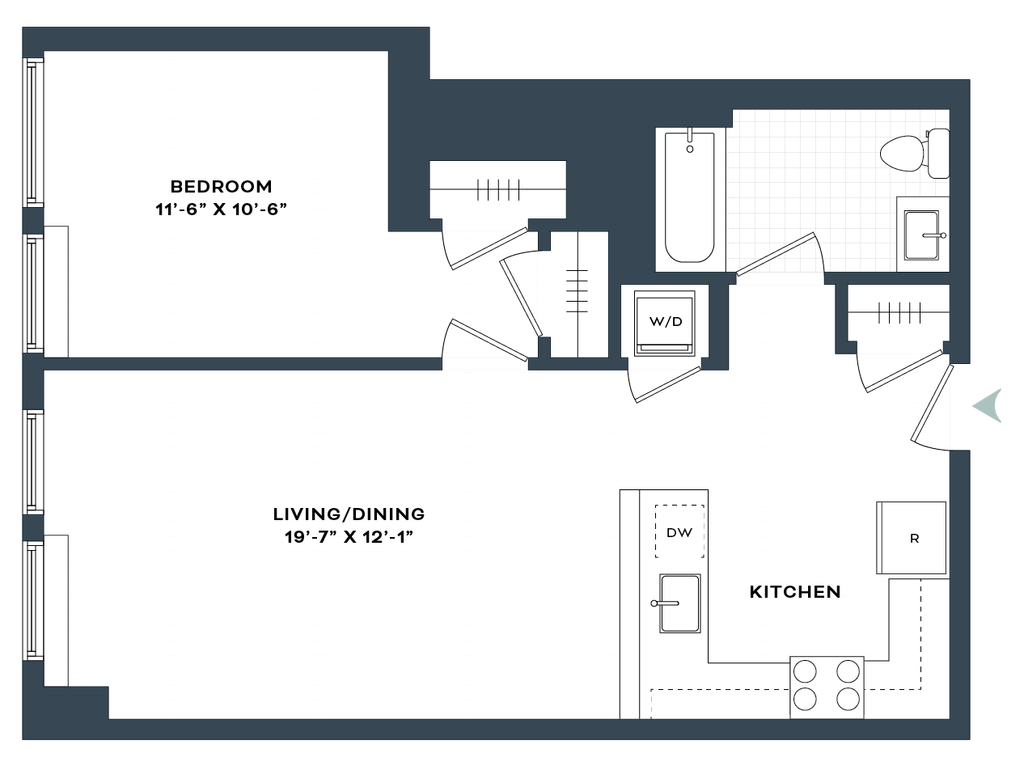 1 Dormitorio, 1 Baño, 755 pies²Disponible AhoraGalería del Modelo