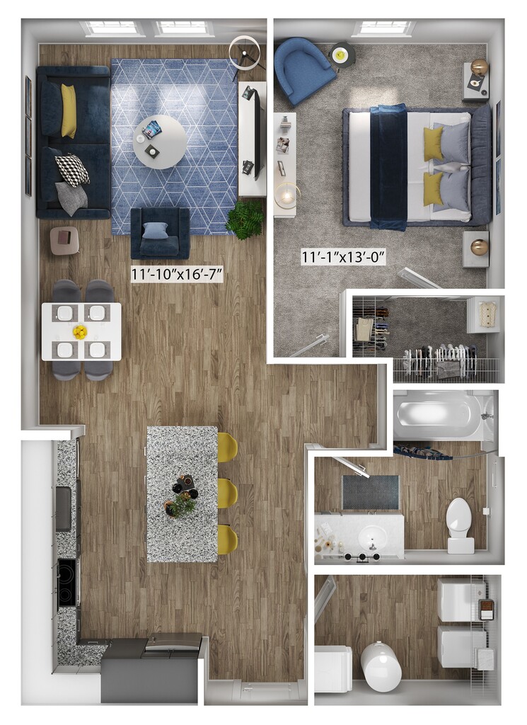 Modelo de apartamento: ExpeditionDesde $1,6371 Dormitorio, 1 Baño, 756 sq ftDisponible Ahora![]()