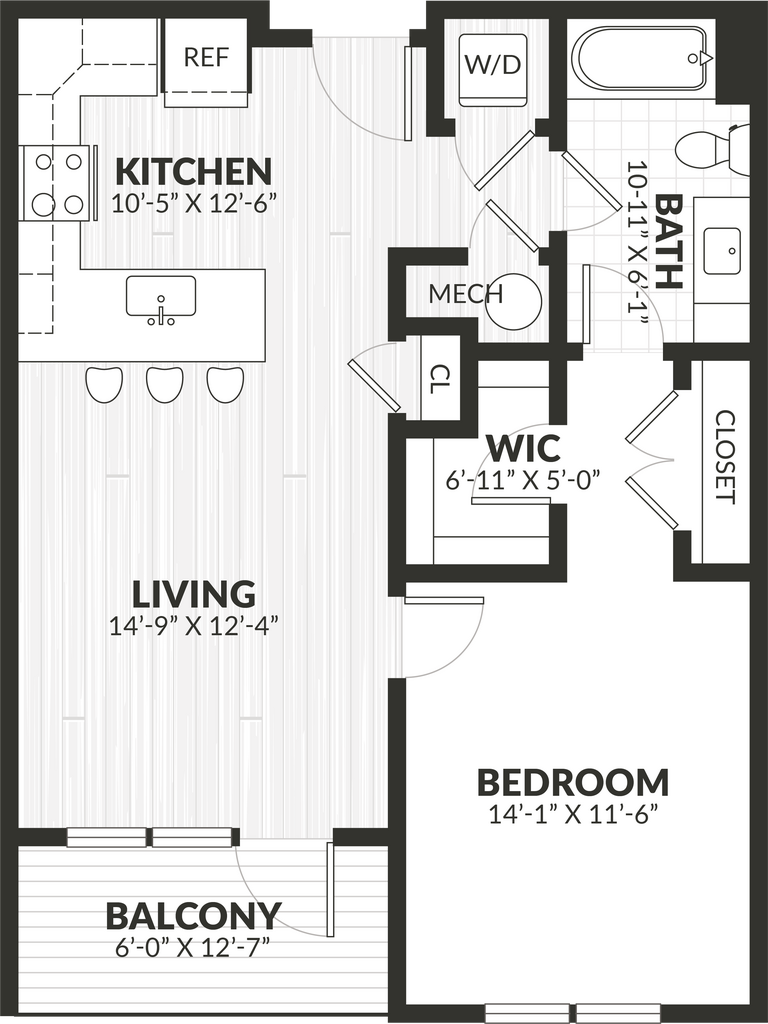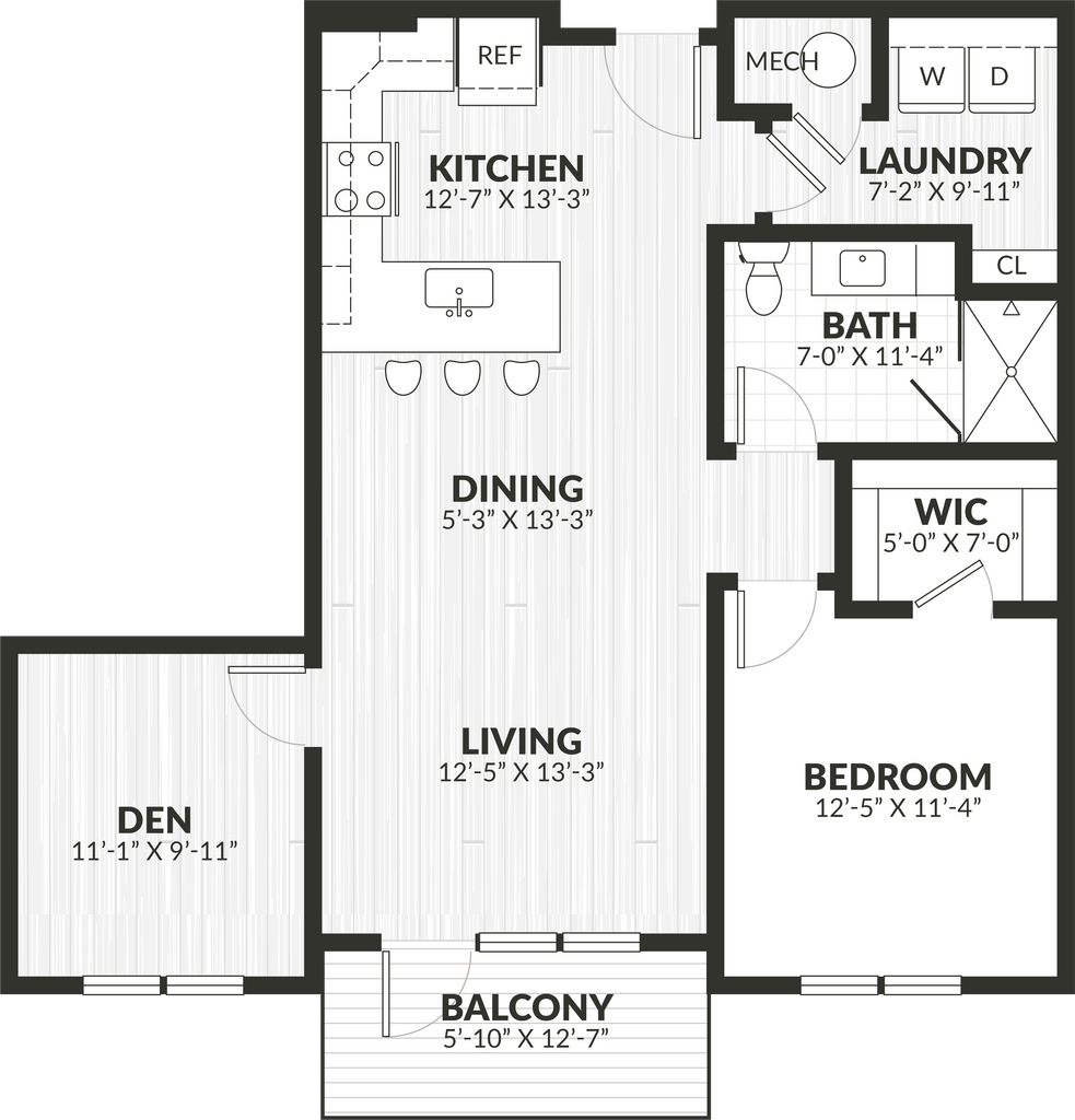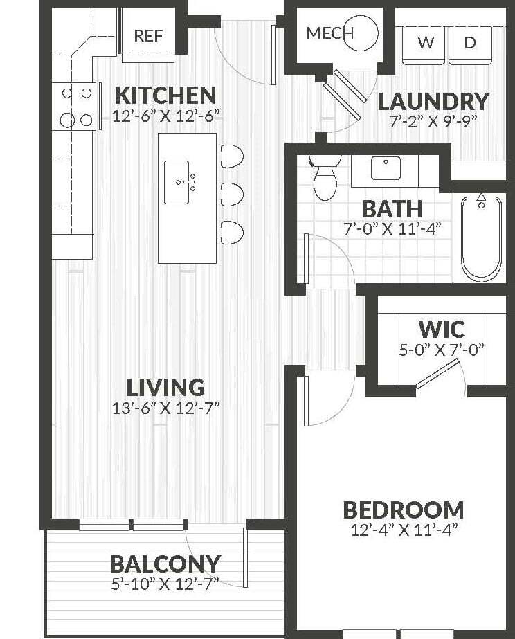 1 Dormitorio, 1 Baño, 755 pies²Disponible AhoraGalería del Modelo