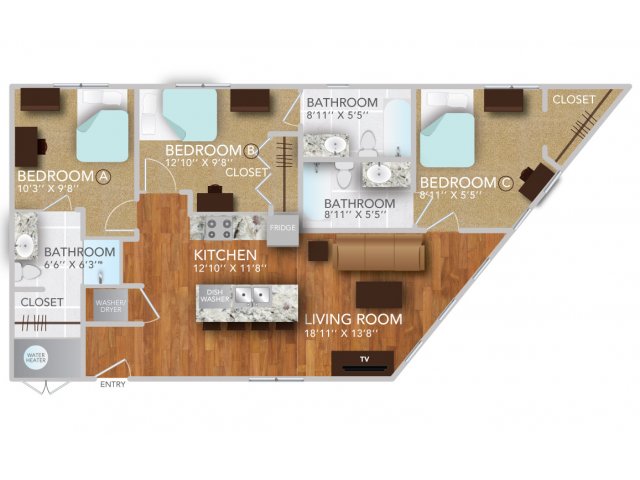 Precio Fecha Disponibilidad Unidad $999 Disponible Ahora 3 Bedroom, 3 Bath Características y Comodidades de Modelo