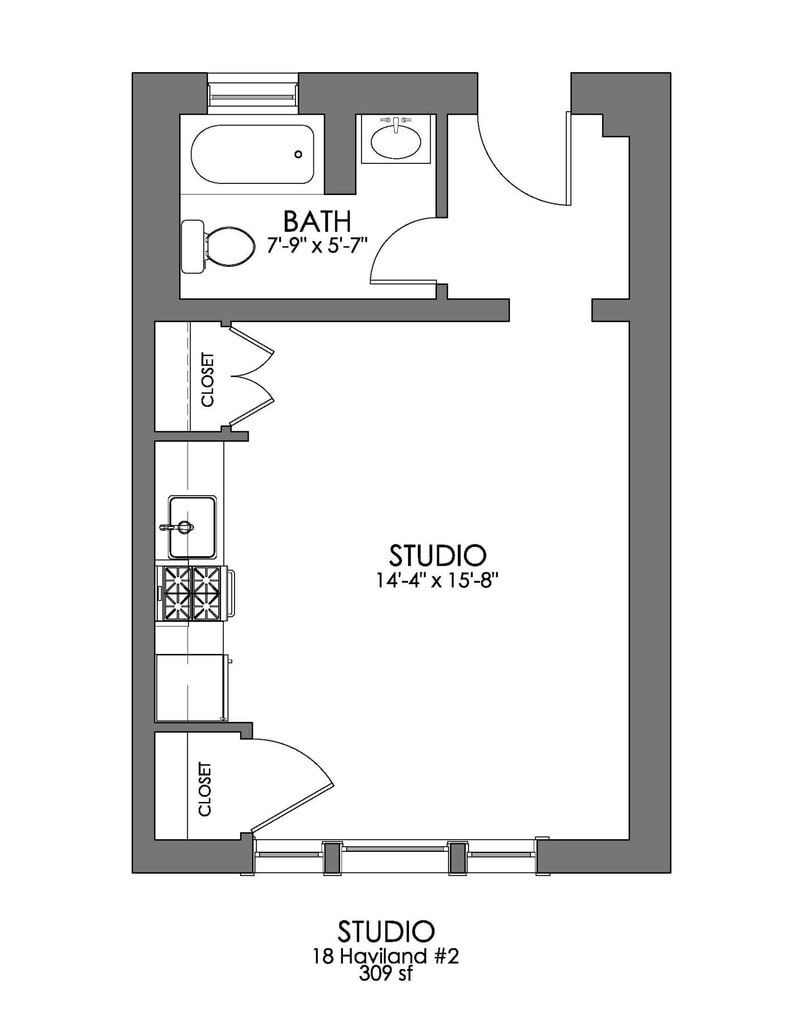 Modelo de apartamento: Haviland Studio C$2,858Estudio, 1 Baño, 309 sq ftNo DisponibleHaviland Studio C - Plano 1 Edgerly Studio B