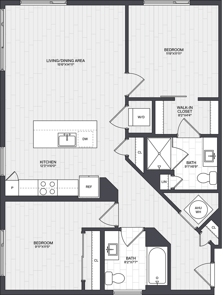 Modelo de apartamento: J8.1Desde $2,5561 Dormitorio, 1 Baño, 695 sq ftDisponible Ahora![]()