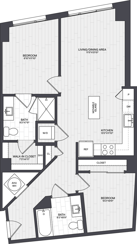 A10.1 - Plano 1 Unidad de apartamento: 318Modelo de apartamento: A10.1$2,4501 Dormitorio, 1 Baño, 725 sq ftDisponible Ahora![]()