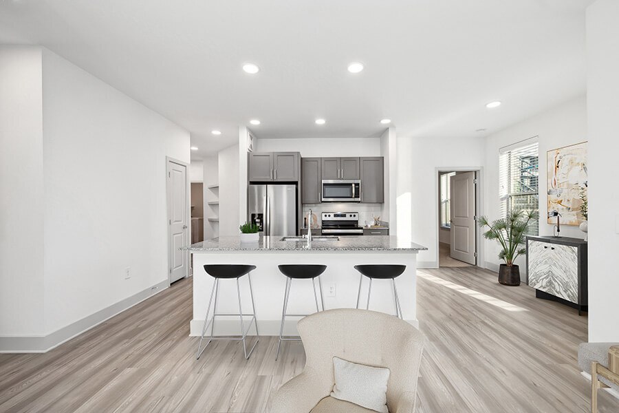 Explora nuestros planos de planta de concepto abierto y encuentra el diseño que mejor se adapte a tu estilo de vida. Disfruta de acabados modernos que incluyen gabinetes de diseñador, electrodomésticos de cocina de bajo consumo, una gran cantidad de luz natural y mucho más. Nuestro complejo cuenta con una colección de comodidades para residentes elegidas para mejorar tu día a día. Explora todo lo que tenemos para ofrecer, desde nuestra espectacular piscina, terraza acogedora y gimnasio bien equipado. ¡También consulta sobre nuestro Programa de empleador preferido para obtener ahorros adicionales!