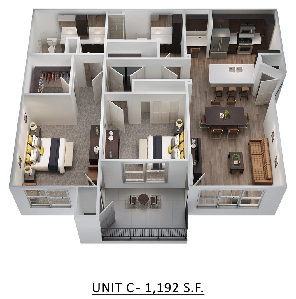 Modelo de apartamento: 2 BED, 2 BATH (C) - 1192 SF$2,1752 Dormitorios, 2 Baños, 1192 sq ftDisponible August 25, 2026![]()
