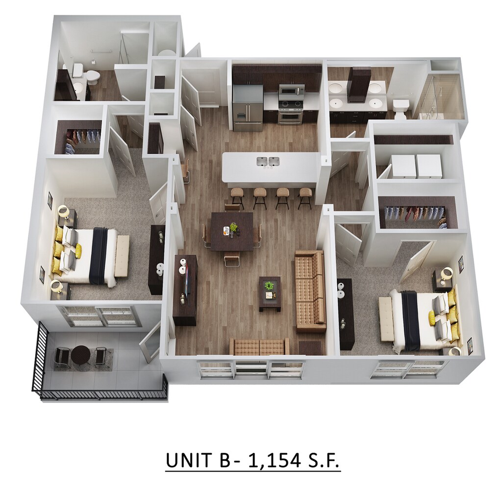 Modelo de apartamento: 2 BED, 2 BATH (B) - 1154 SF$2,1502 Dormitorios, 2 Baños, 1154 sq ftDisponible Ahora![]()