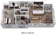 1 Dormitorio, 1 Baño, 1087 pies²El más grandeEsta opción tiene las unidades más grandes para este modeloGalería del Modelo