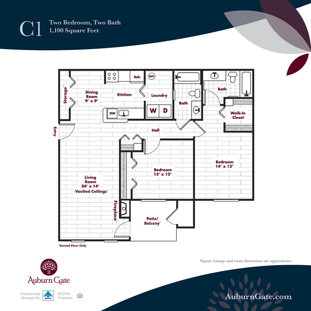 Modelo de apartamento: C1 EnhancedDesde $1,5602 Dormitorios, 2 Baños, 1100-1150 sq ftDisponible Ahora![]()