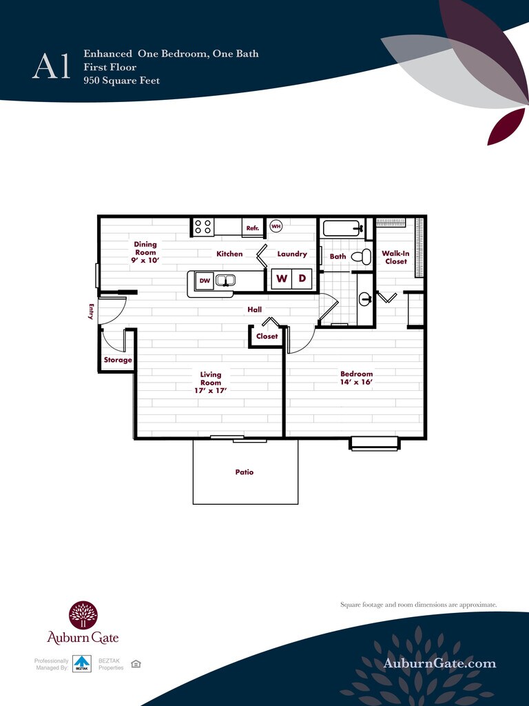 Modelo de apartamento: A1 EnhancedDesde $1,4941 Dormitorio, 1 Baño, 950 sq ftDisponible Ahora![]()