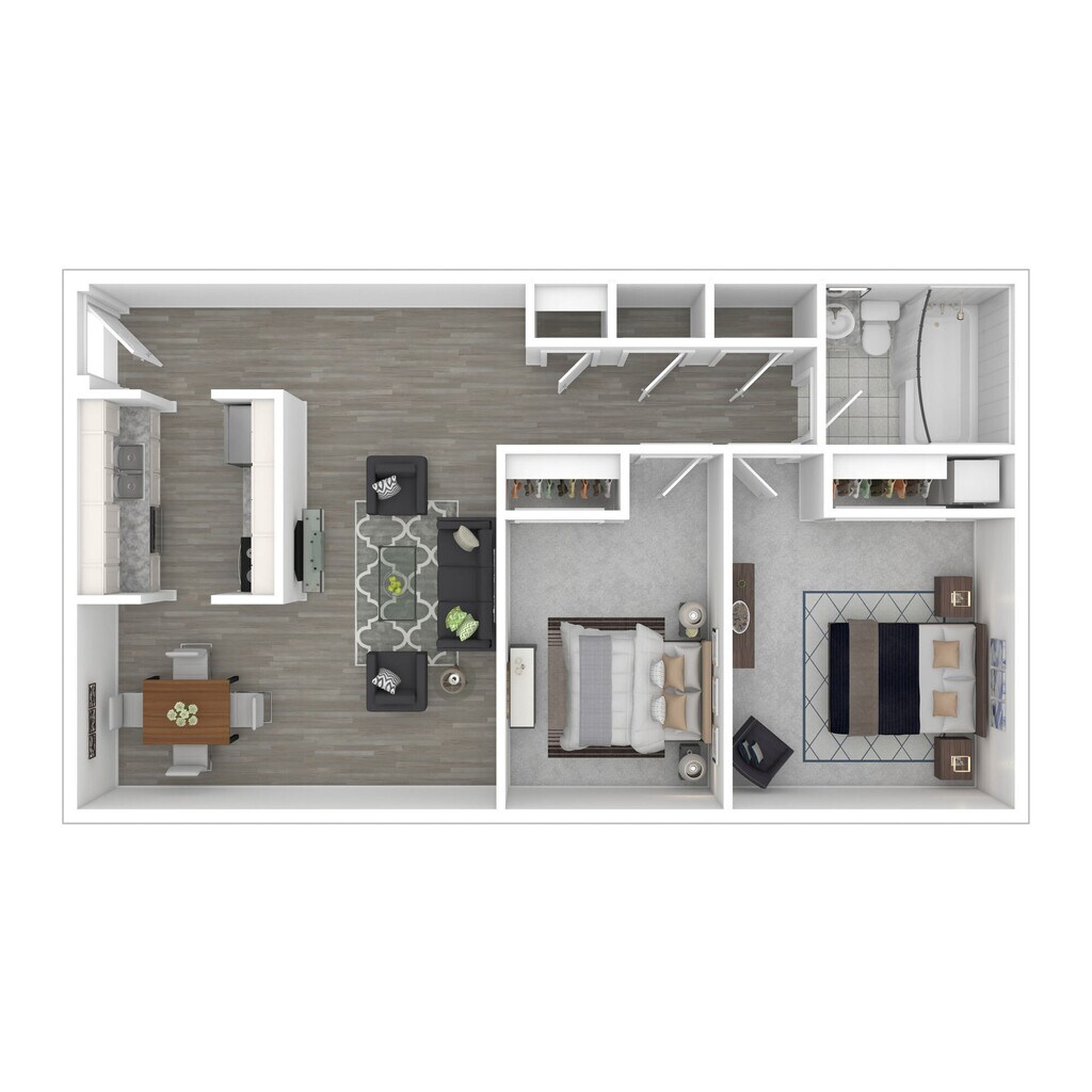 Modelo de apartamento: BurgundyDesde $9851 Dormitorio, 1 Baño, 702 sq ftNo Disponible![]()