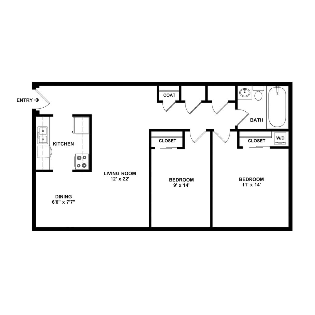 2 Dormitorios, 1.5 Baños, 1024 pies²Disponible AhoraEl más grandeEsta opción tiene las unidades más grandes para este modeloGalería del Modelo