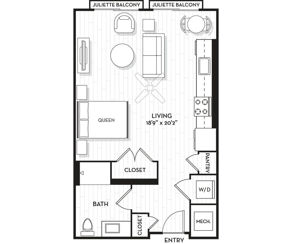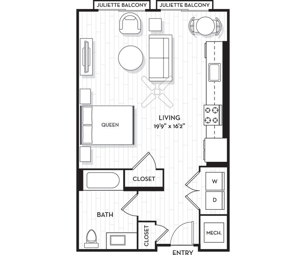 Estudio, 1 Baño, 766 pies²Disponible AhoraGalería del Modelo