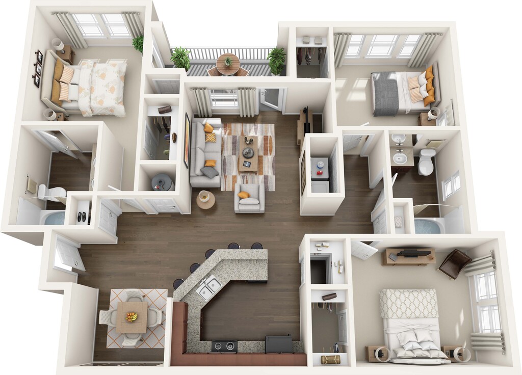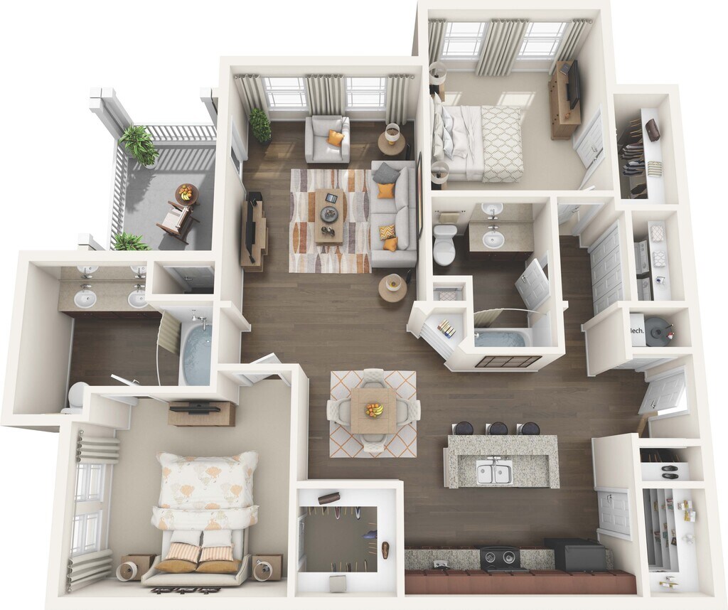 Modelo de apartamento: The CardinalDesde $1,4611 Dormitorio, 1 Baño, 847 sq ftDisponible Ahora![]()