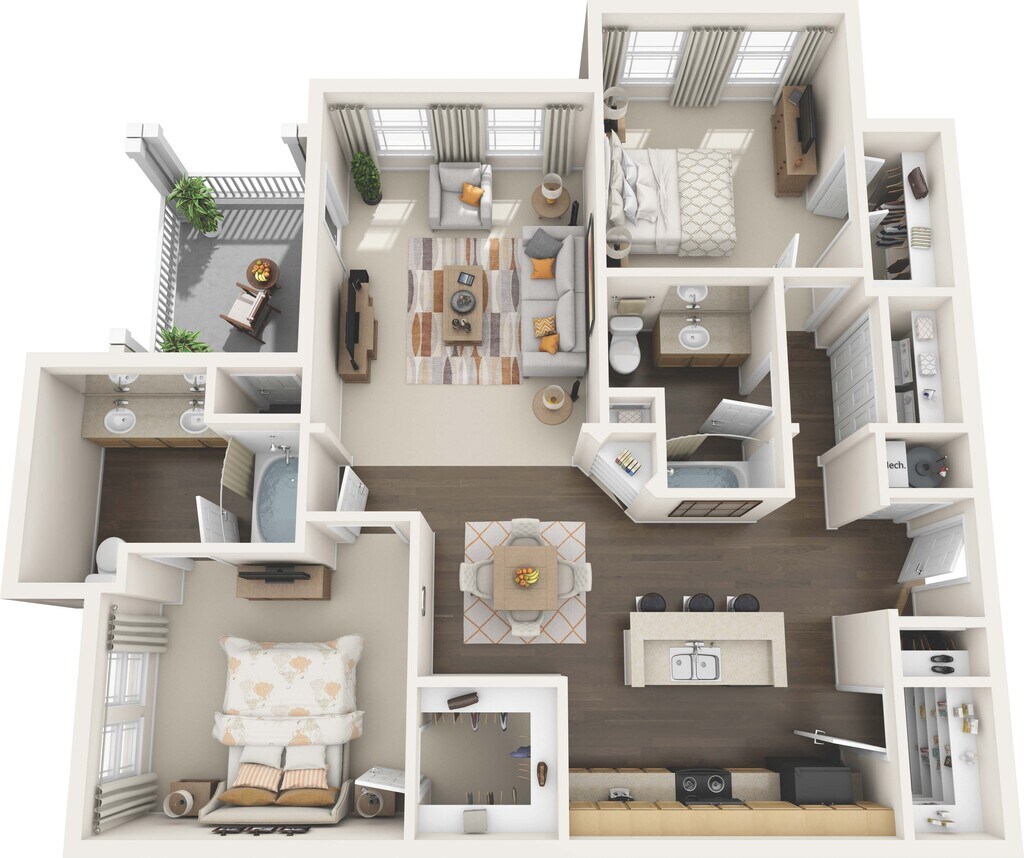 Modelo de apartamento: The FinchDesde $1,4201 Dormitorio, 1 Baño, 800 sq ftDisponible Ahora![]()