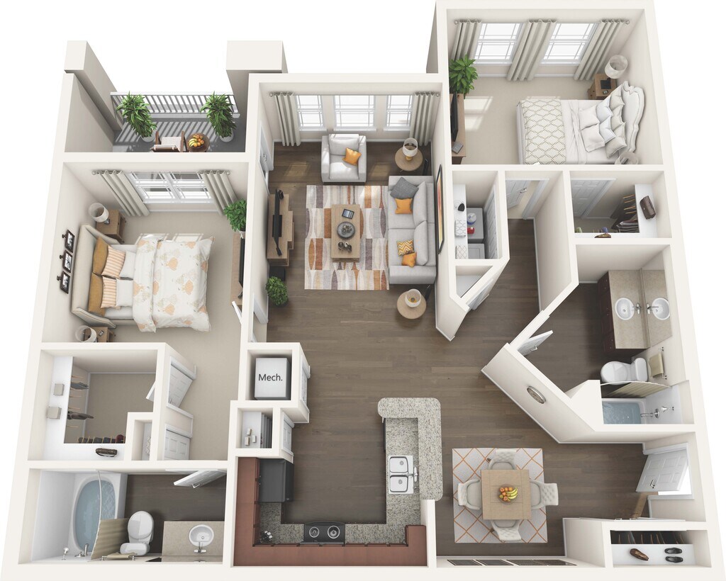 1 Dormitorio, 1 Baño, 847 pies²Disponible AhoraGalería del Modelo
