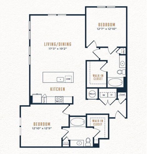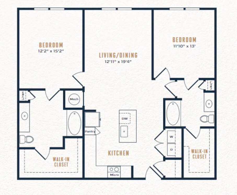 Modelo de apartamento: B1Desde $1,8252 Dormitorios, 2 Baños, 1265 sq ftDisponible Ahora![]()