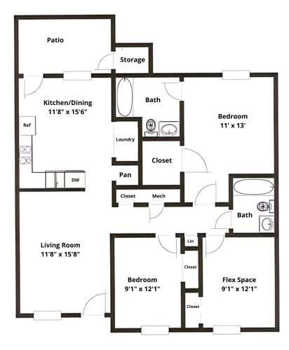 Modelo de apartamento: C2 Flex UpgradedLlame para Precios3 Dormitorios, 2 Baños, 1094 sq ftNo DisponibleC2 Flex Upgraded - Plano 1