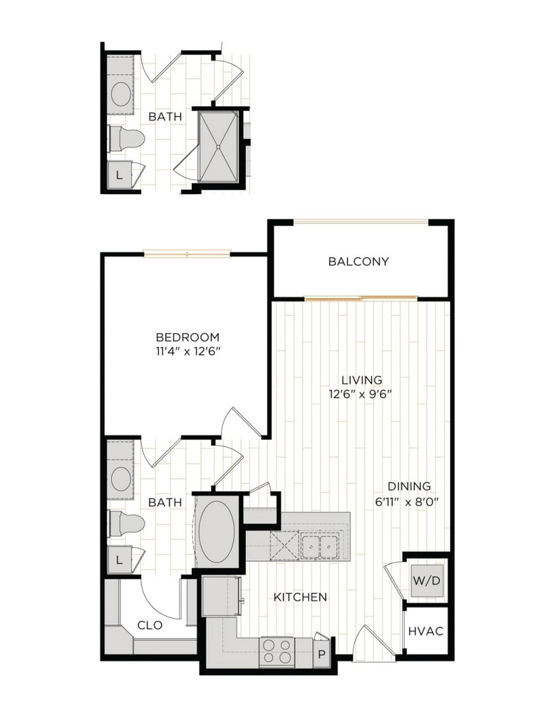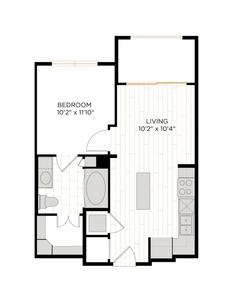 1 Dormitorio, 1 Baño, 723 pies²Disponible AhoraGalería del Modelo