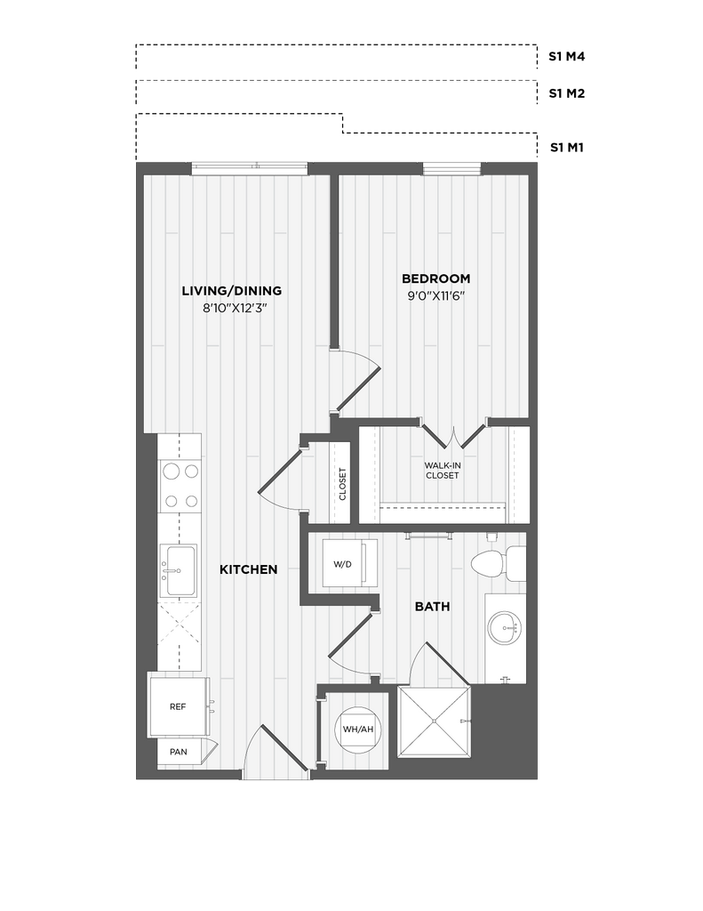 1 Bed/1 Bath-S1 - Plano 1 Unidad de apartamento: 421Modelo de apartamento: 1 Bed/1 Bath-S11 Dormitorio, 1 Baño, 551 sq ftDisponible November 28, 2025![]()