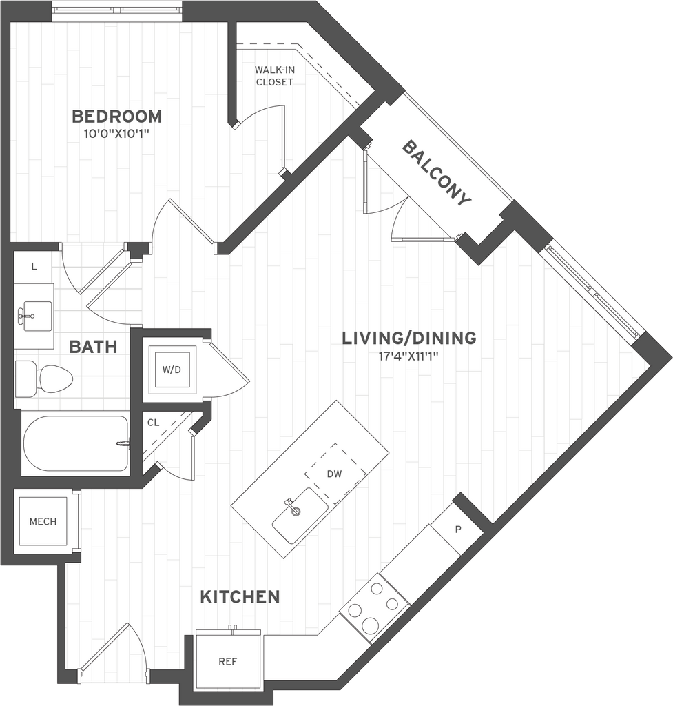 1 Dormitorio, 1 Baño, 703 pies²Disponible January 7, 2026Galería del Modelo