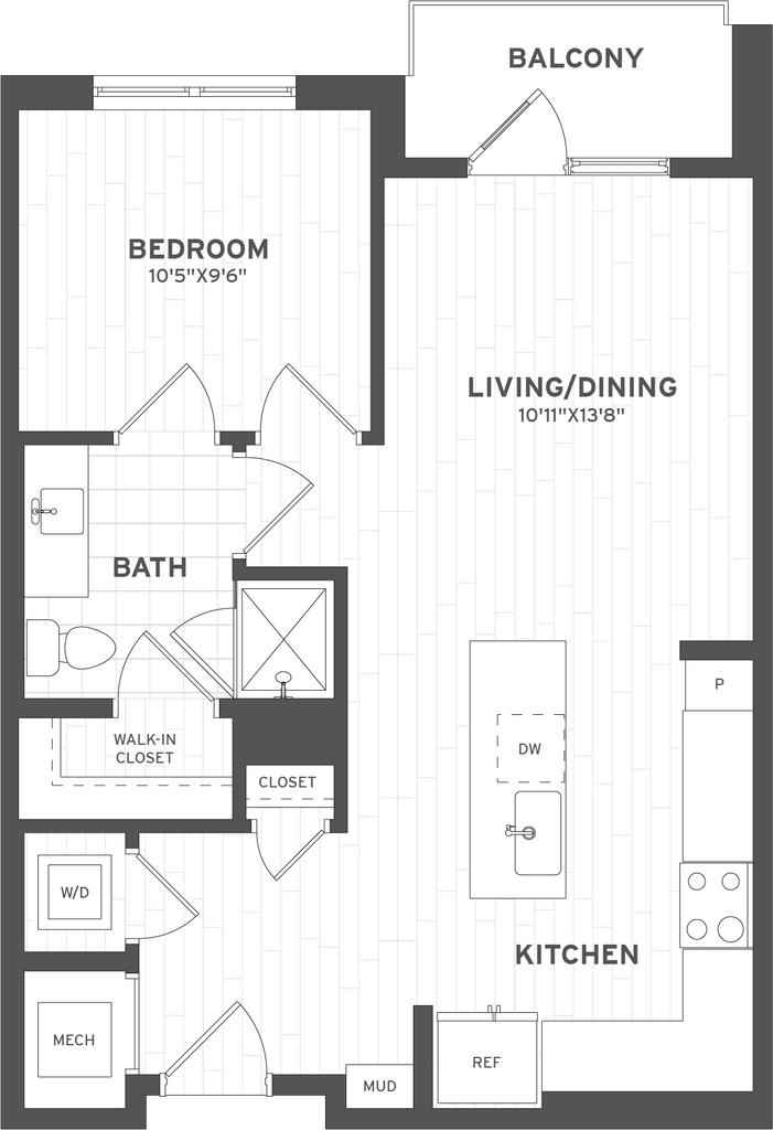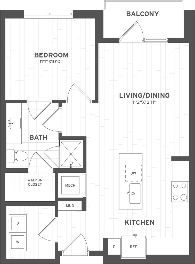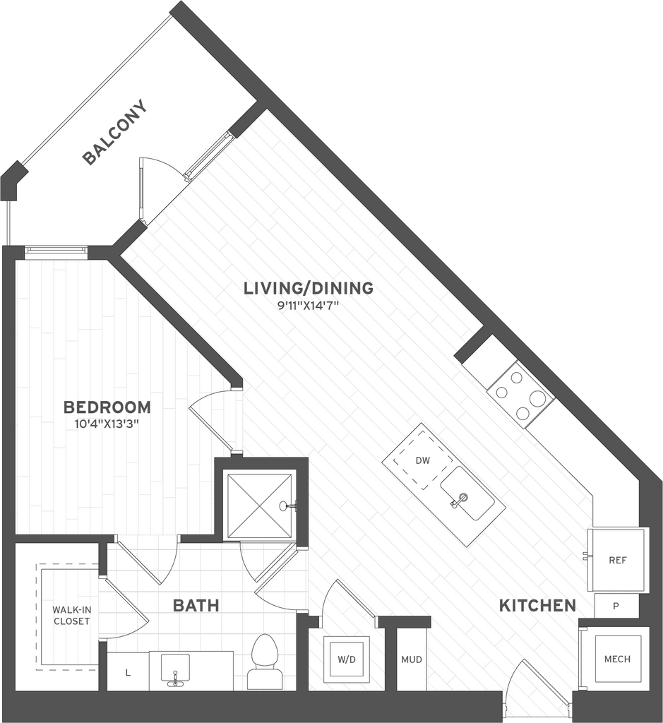 1 Dormitorio, 1 Baño, 711 pies²Disponible January 7, 2026Galería del Modelo