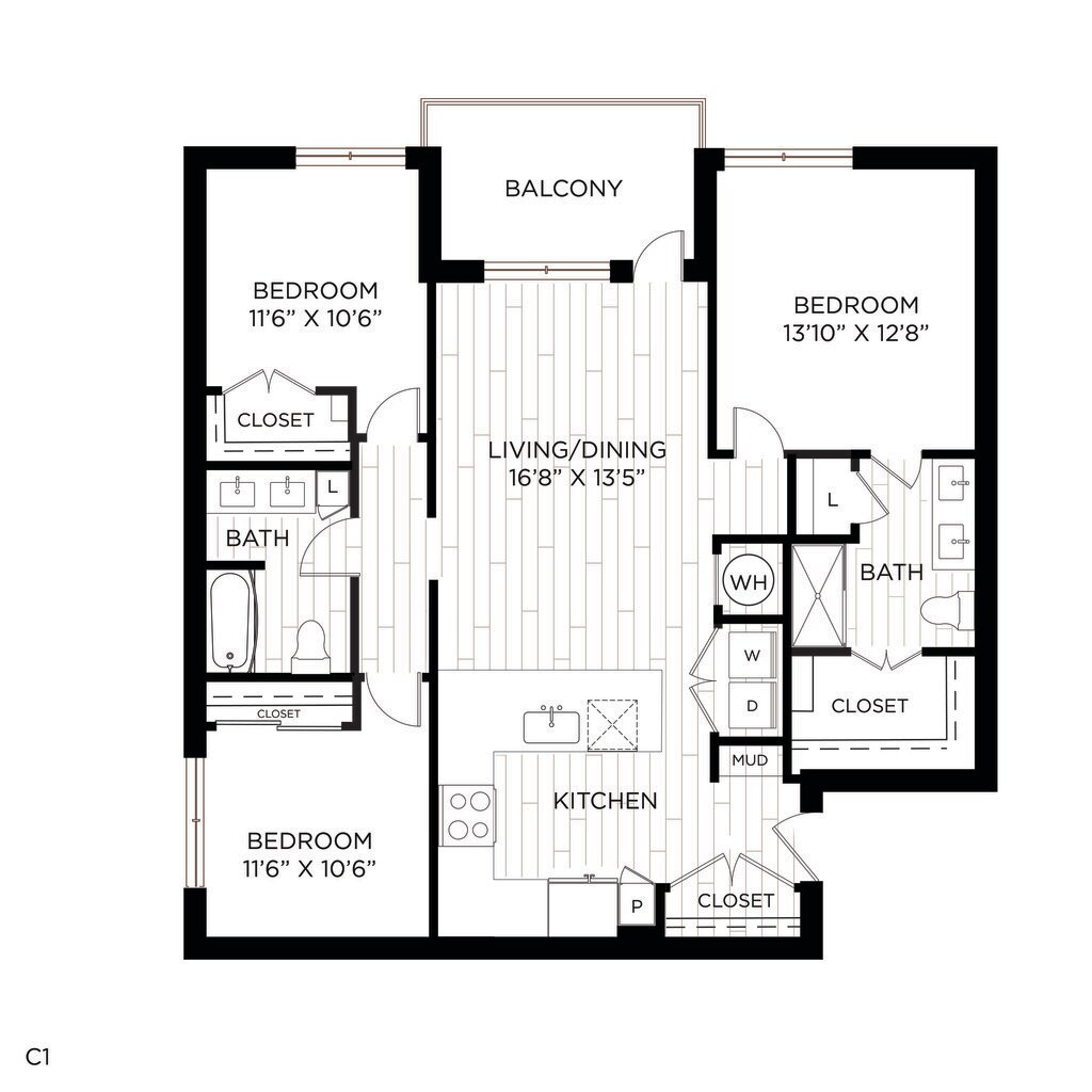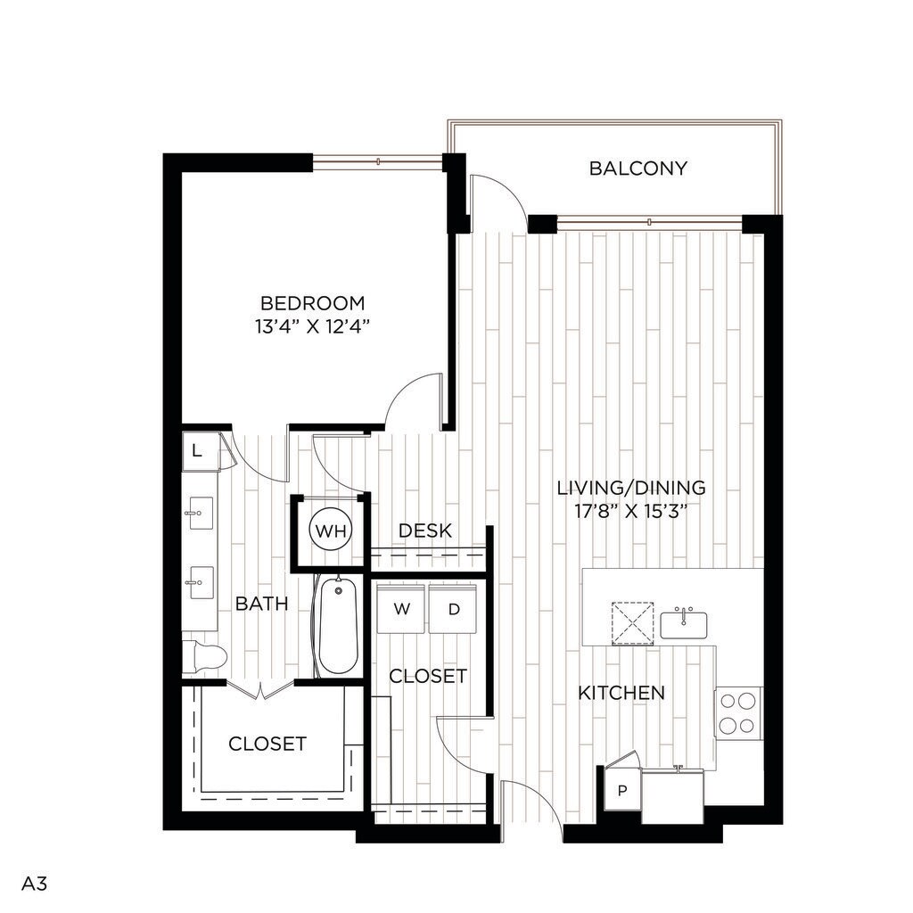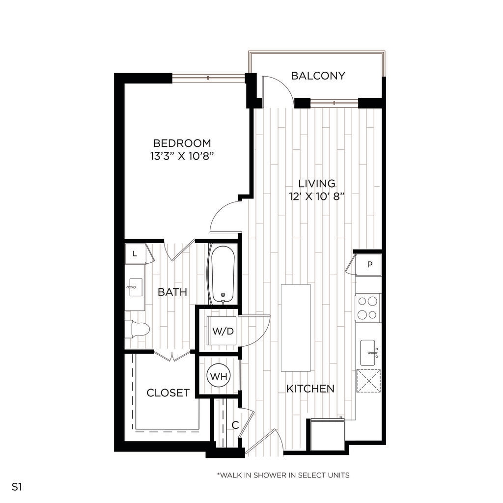 Modelo de apartamento: S1Desde $1,465Estudio, 1 Baño, 648 sq ftDisponible Ahora![]()