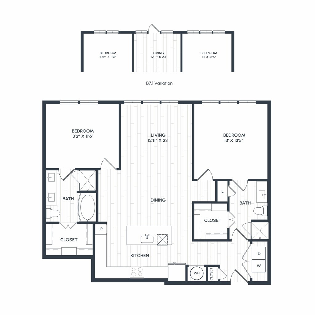 1 Dormitorio, 1 Baño, 737 pies²Disponible Feb 20Galería del Modelo