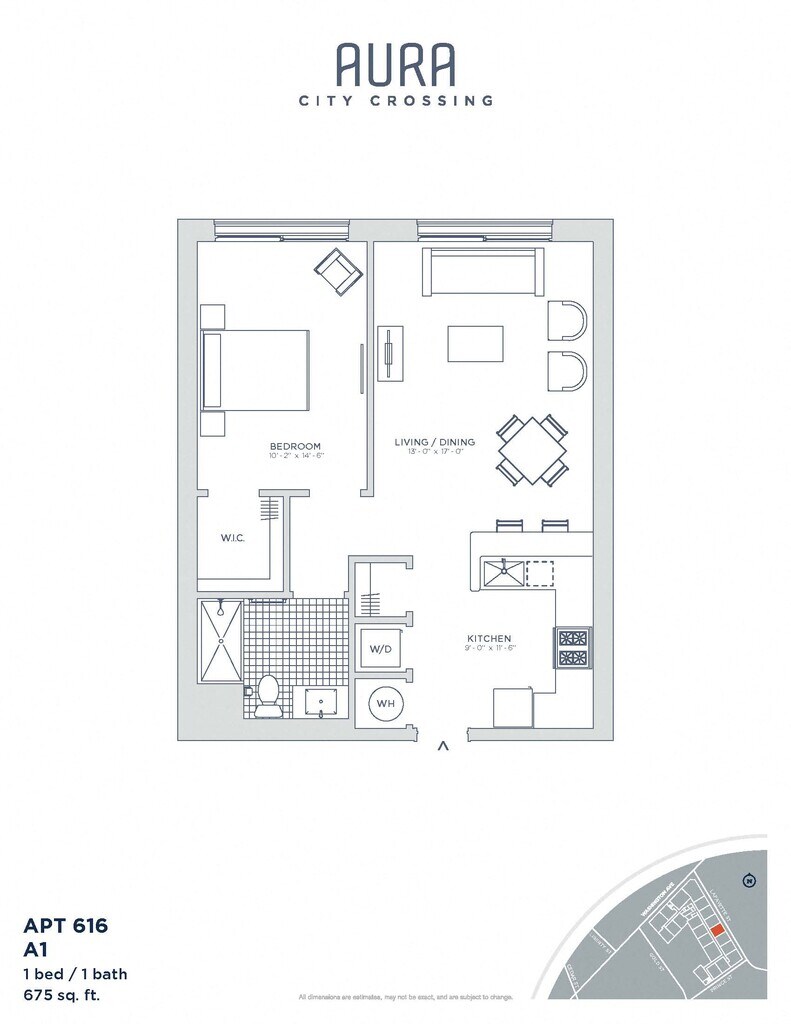A1 - Plano 1 Unidad de apartamento: 315Modelo de apartamento: A1$2,2021 Dormitorio, 1 Baño, 675 sq ftDisponible Ahora![]()