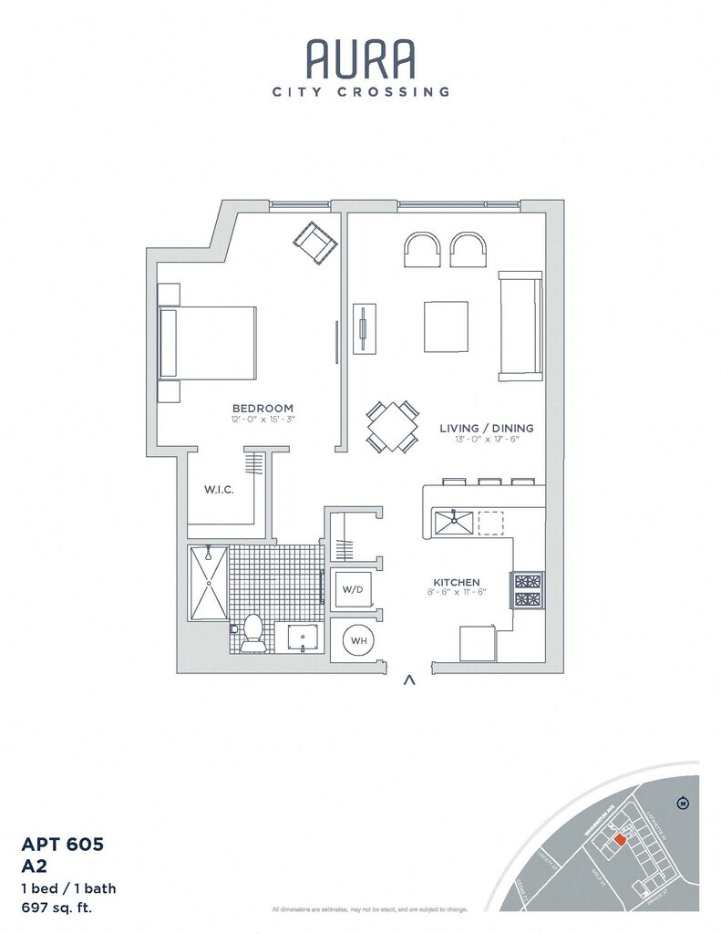 Unidad: 405 - Imagen 1 Unidad de apartamento: 605Modelo de apartamento: A2$2,6761 Dormitorio, 1 Baño, 697 sq ftDisponible Ahora![]()