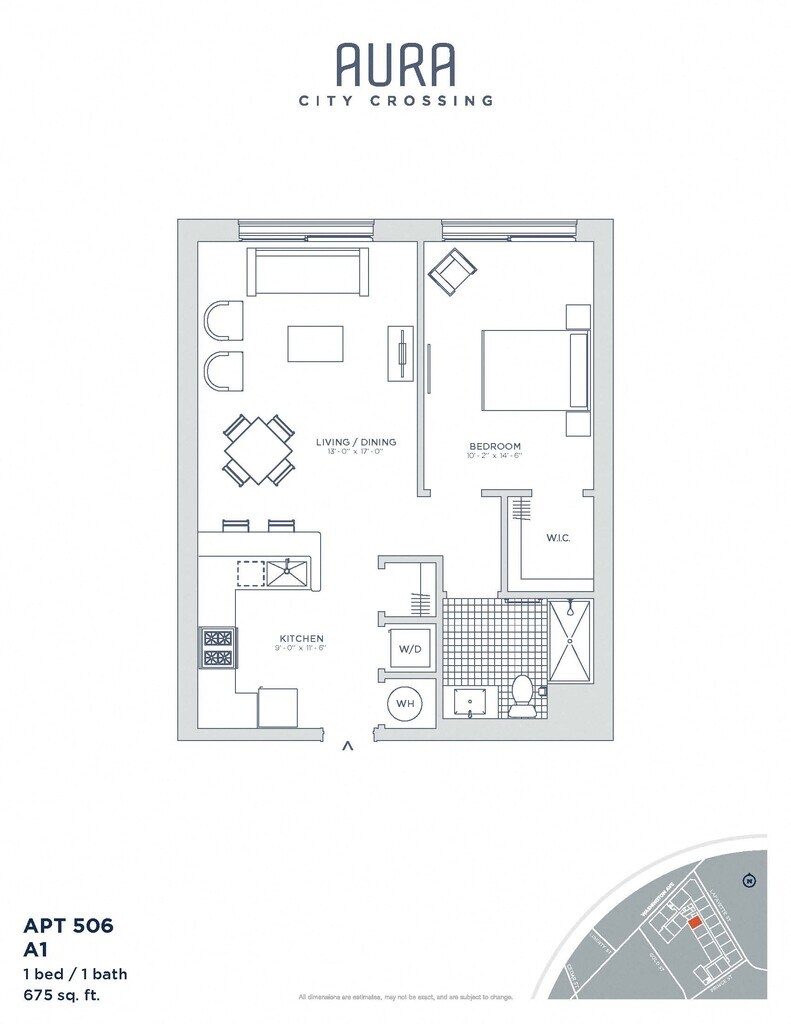 Unidad: 315 - Imagen 1 Unidad de apartamento: 506Modelo de apartamento: A1$2,2421 Dormitorio, 1 Baño, 675 sq ftDisponible Ahora![]()