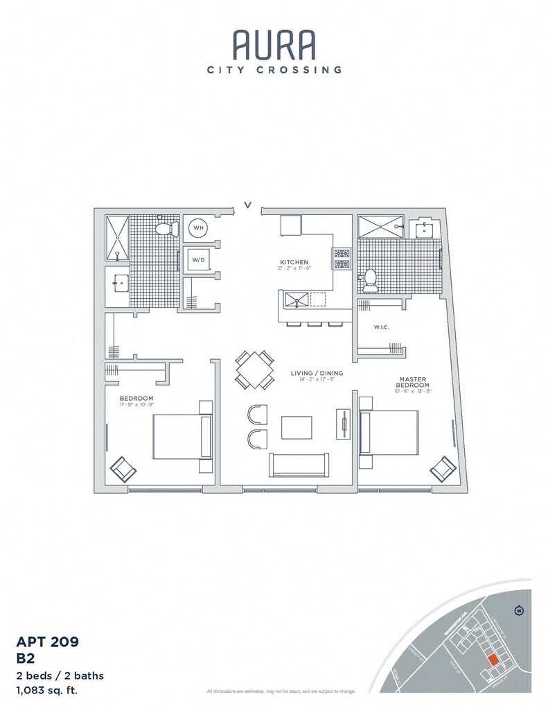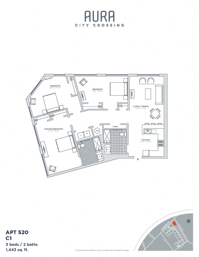 Aura at City Crossing ofrece apartamentos de 1 a 3 Dormitorios desde $2,152 con 664–1,443 pies cuadrados. Aquí está el precio actual y la disponibilidad: