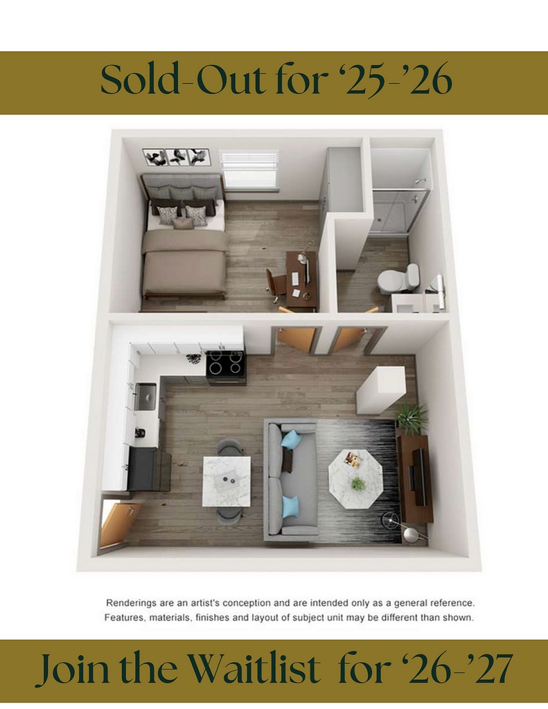 1 Dormitorio, 1 Baño, 700 pies²Disponible AhoraGalería del Modelo