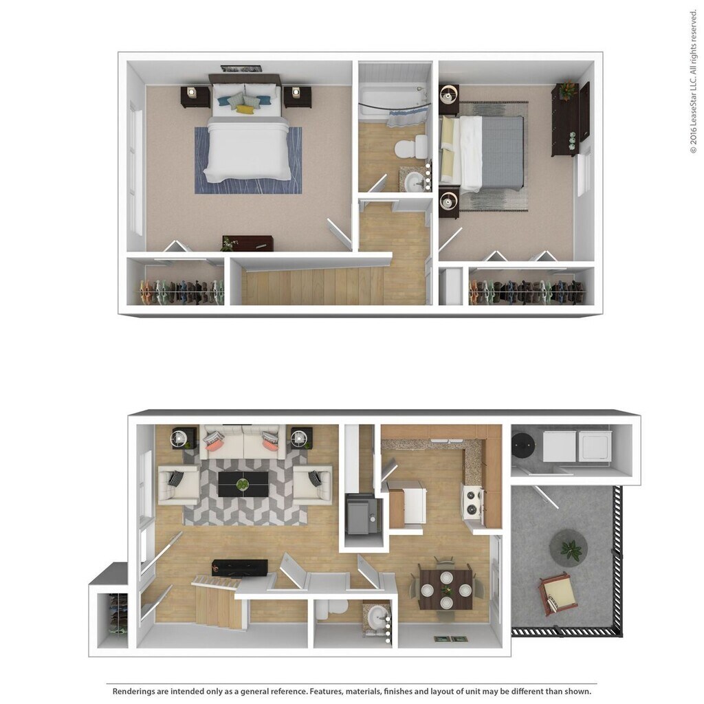 2 Dormitorios, 2 Baños, 1122 pies²Galería del Modelo