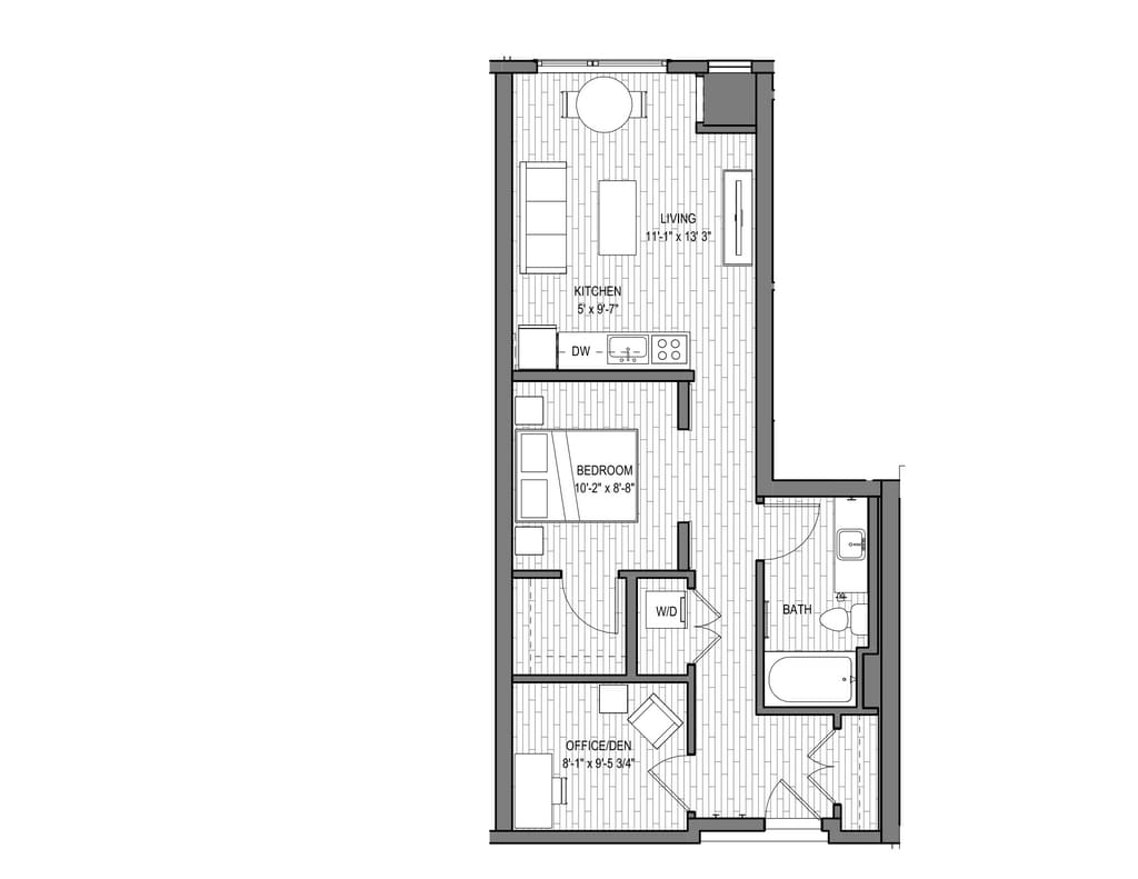 Modelo de apartamento: HydrogenLlame para PreciosEstudio, 1 Baño, 520 sq ftNo Disponible![]()