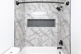 - Sensación contemporánea con encimeras de cuarzo y gabinetes personalizados.