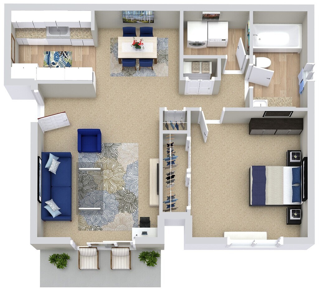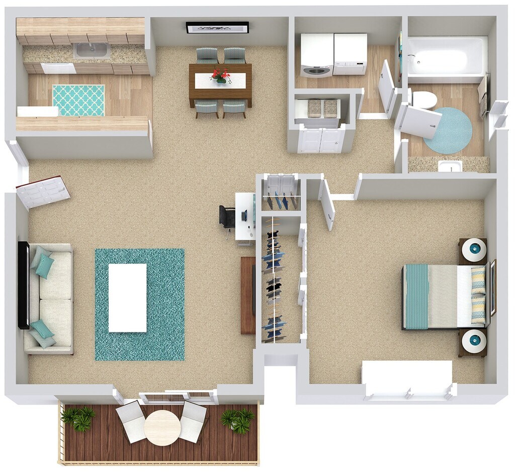 1 Dormitorio, 1 Baño, 733 pies²El más grandeEsta opción tiene las unidades más grandes para este modeloGalería del Modelo