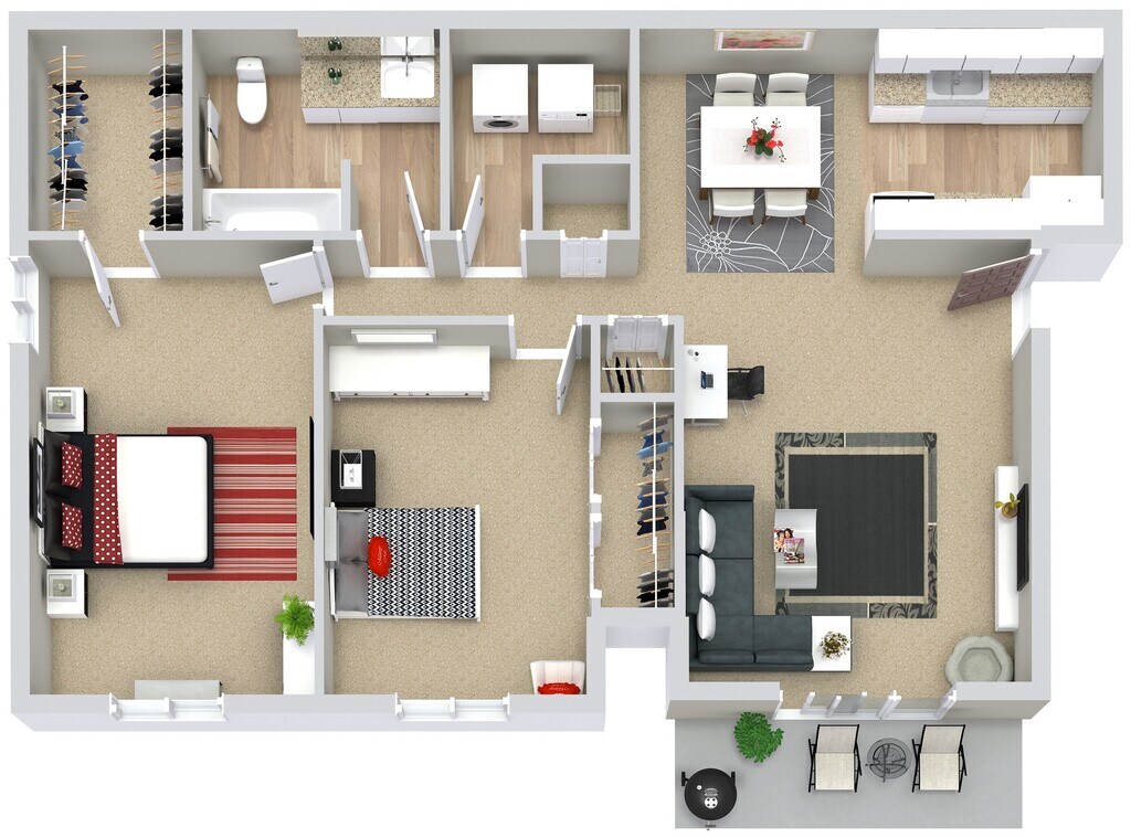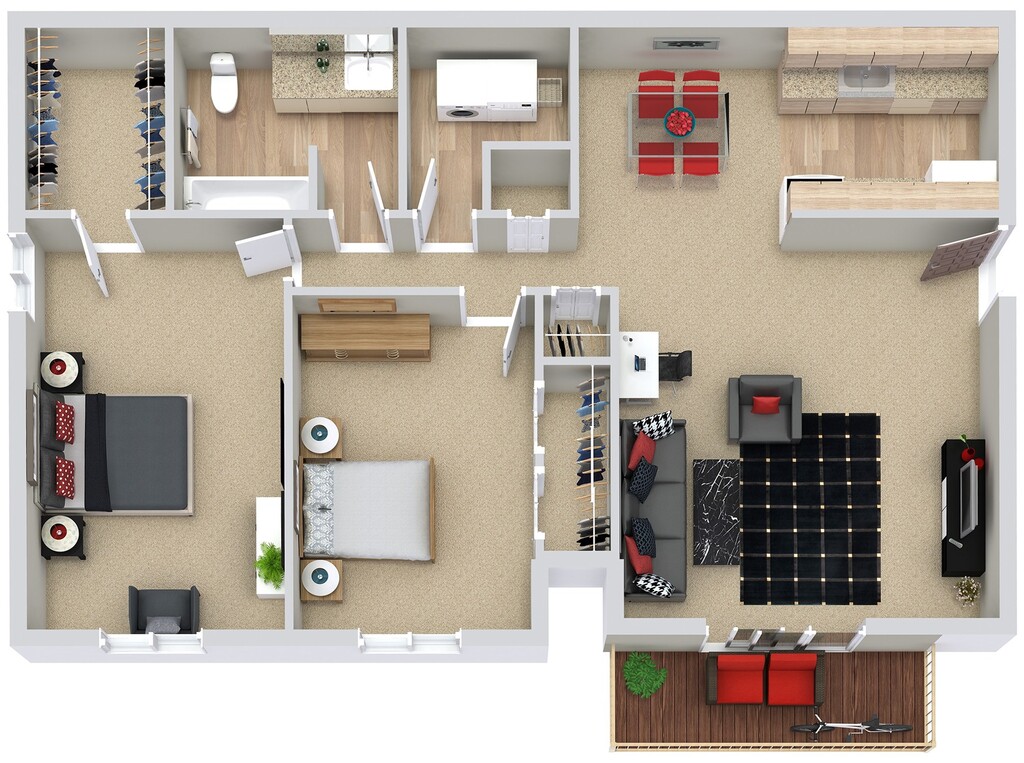 2 Beds | 1 Bath Deluxe Two Bedroom - Plano 2