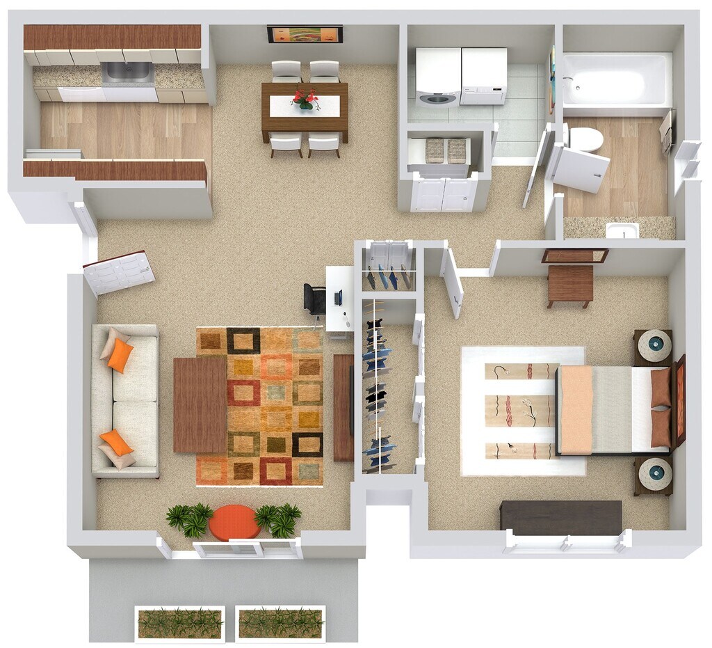 2 Beds | 1 Bath Deluxe Two Bedroom - Plano 1 ![]()